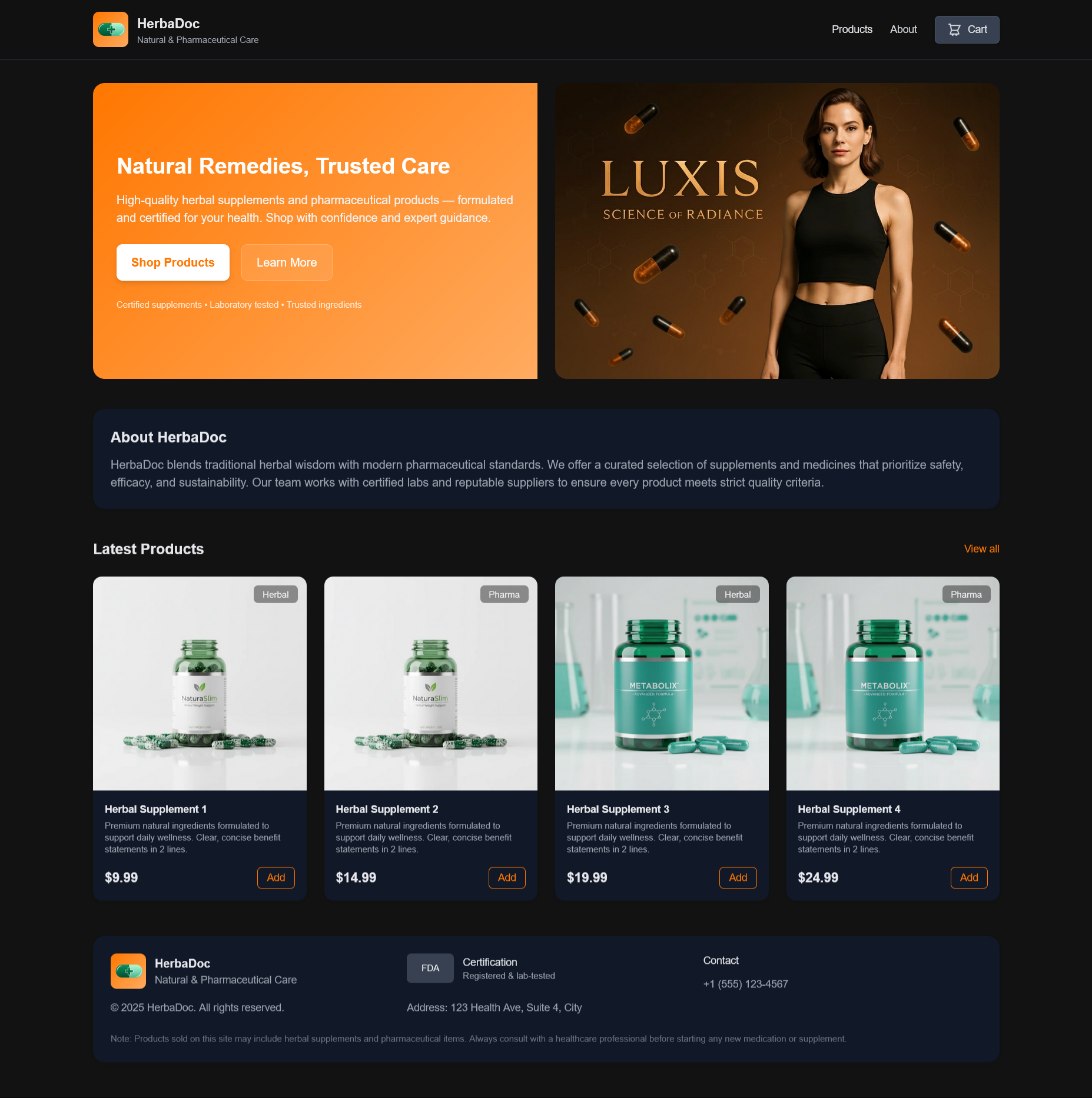 این سایت در حال حاضر آمادهی نمایش صفحات فروش، بلاگ، معرفی دارو و سبد خرید است و از ساختار ماژولار برای توسعهی سریعتر در آینده استفاده میکند.