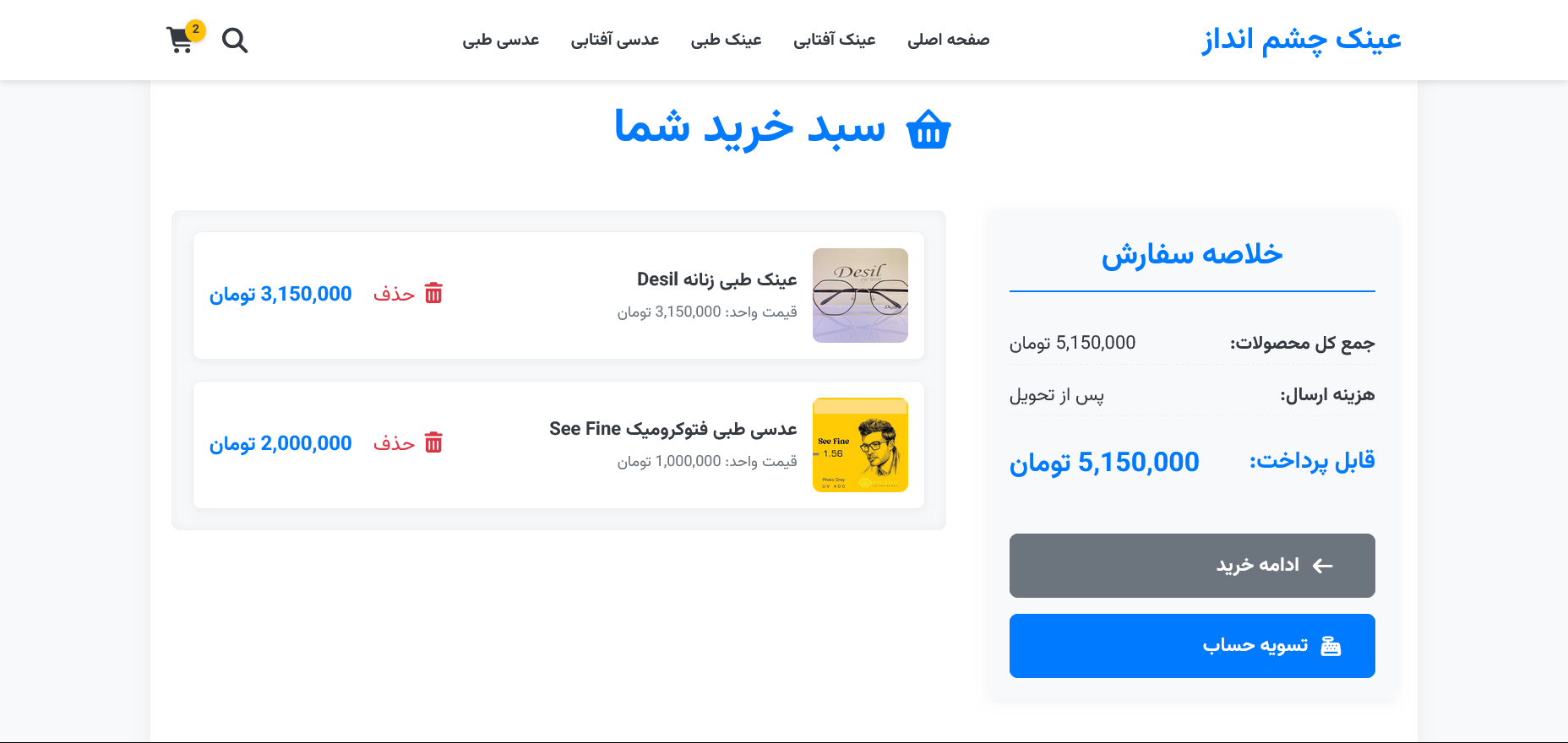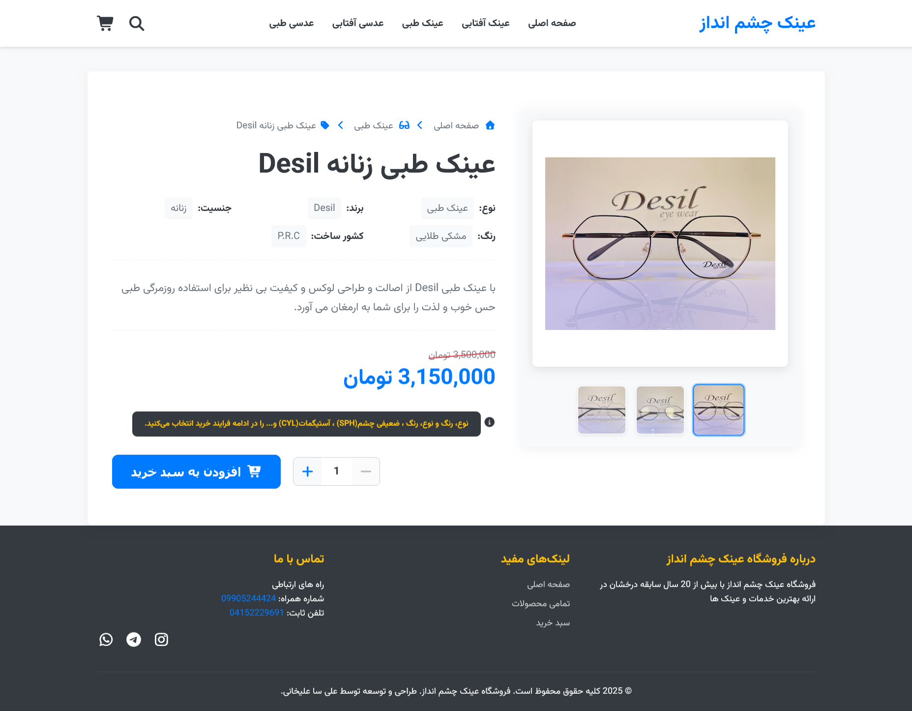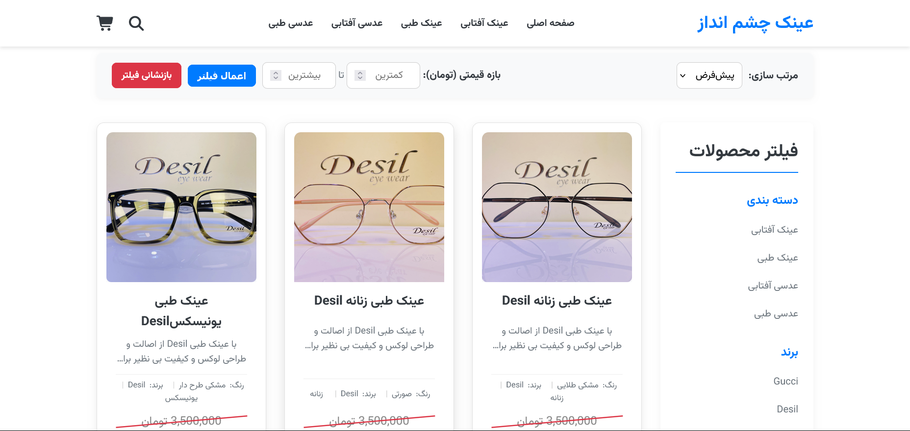 وبسایت فروشگاهی عینک چشم انداز، یک پلتفرم تجارت الکترونیک است که برای عرضه تخصصی انواع عینک طراحی شده است. این پروژه با دامنه cheshmandazoptic.ir تنها در مدت ۳ روز کاری به مرحله اجرا رسید.