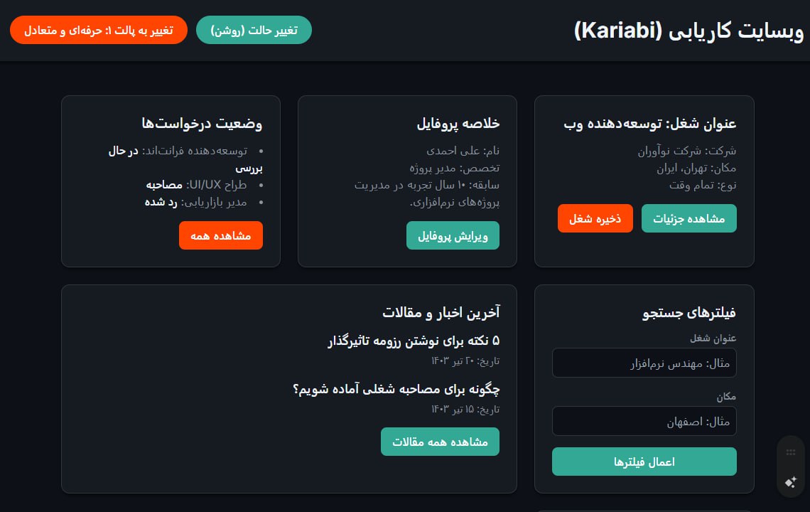 کاریابی میانه آنلاین یک پلتفرم جامع برای درخواست کاریابی است که شامل یک وبسایت و یک اپلیکیشن اندروید (WebView) میشود. این پروژه با دامنه miyanehonline.ir با هدف تسهیل ارتباط بین کارجو و کارفرما توسعه داده شد.