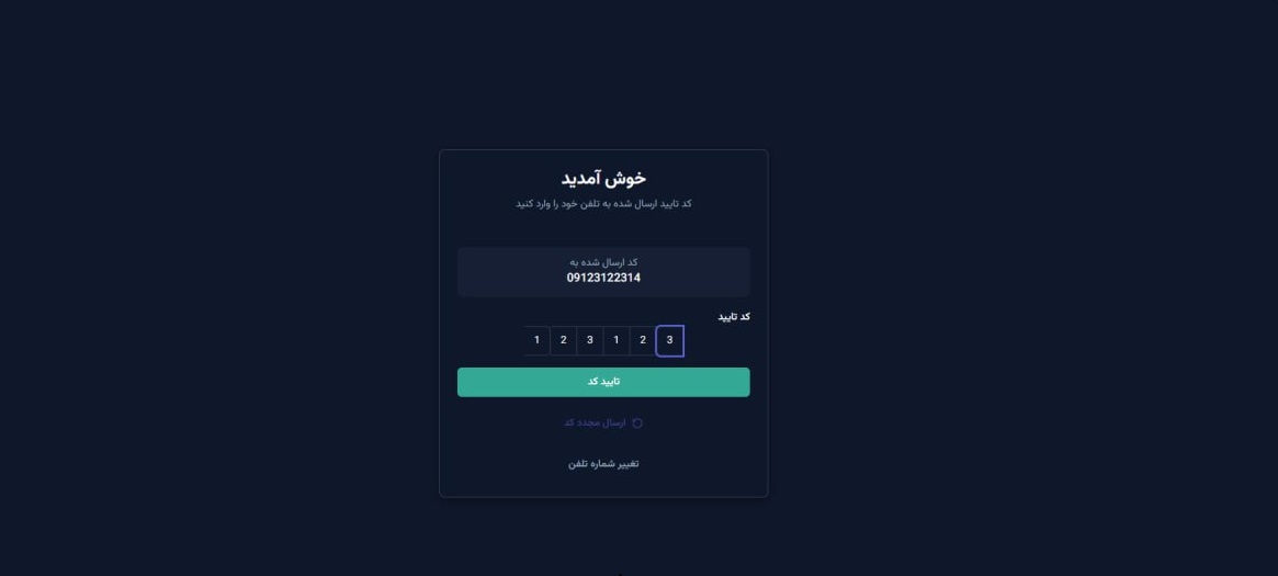 (صفحه ورود به همراه کد تایید)