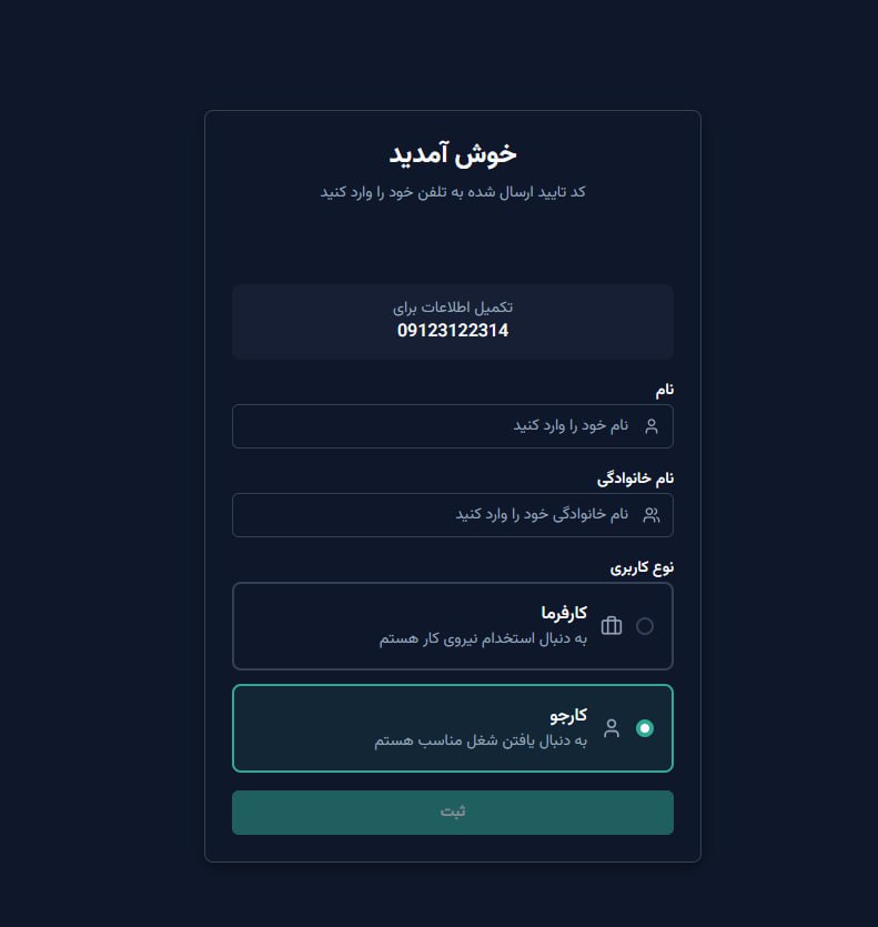 (تکمیل ثبت نام و احراز هویت به عنوان کارفرما یا کارجو)